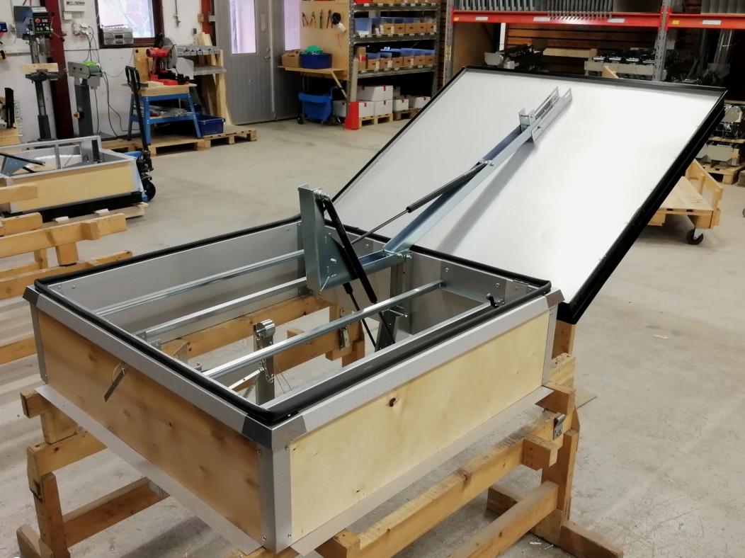 FVEP-CE - CE-godkänd lucka med gasfjädrar för nybyggnation/ tillbyggnad
